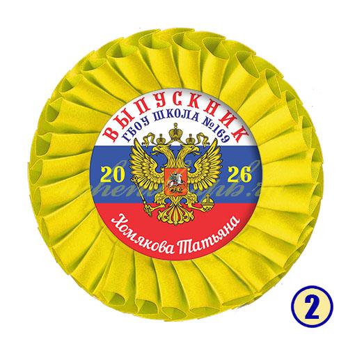 Изготовлен из атласной ленты, серединка - из металла и прочного пластика с яркой картинкой.