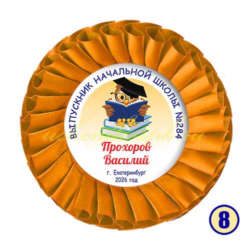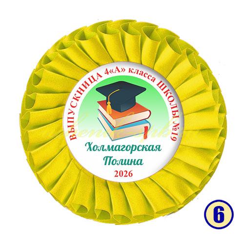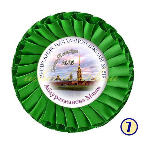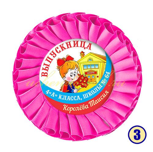 Изготовлен из атласной ленты, серединка - из металла и прочного пластика с яркой картинкой.